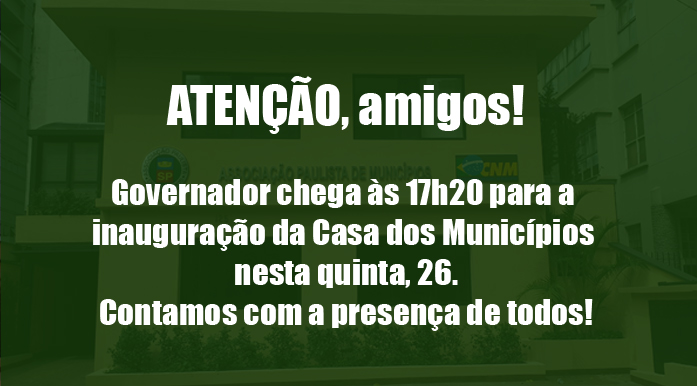 Governador chega às 17h20 para a inauguração da Casa dos Municípios nesta quinta, 26. Contamos com a presença de todos!
