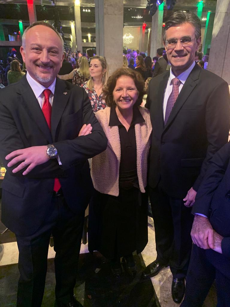 Na foto: o Cônsul Dr. Domenico Ferrara, a Conselheira da APM Marilene Mariottoni e o Governador Rodrigo Garcia.
