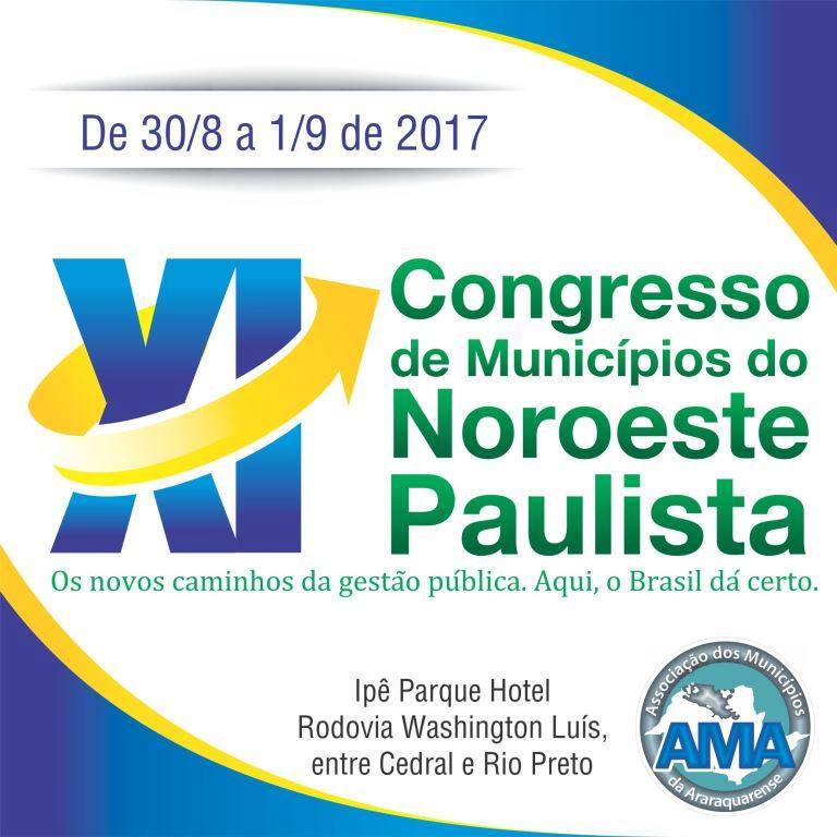 A XI edição do Congresso de Municípios do Noroeste Paulista, realizado pela AMA – Associação dos Municípios da Araraquarense, terá a presença do presidente da APM, Carlos Cruz, do vice, Marcelo Barbieri, e membros da diretoria da instituição. Também estão confirmadas presenças de representantes dos governos do Estado e Federal. O Congresso, que começa hoje, quarta, 30, segue até sexta, dia primeiro de setembro.