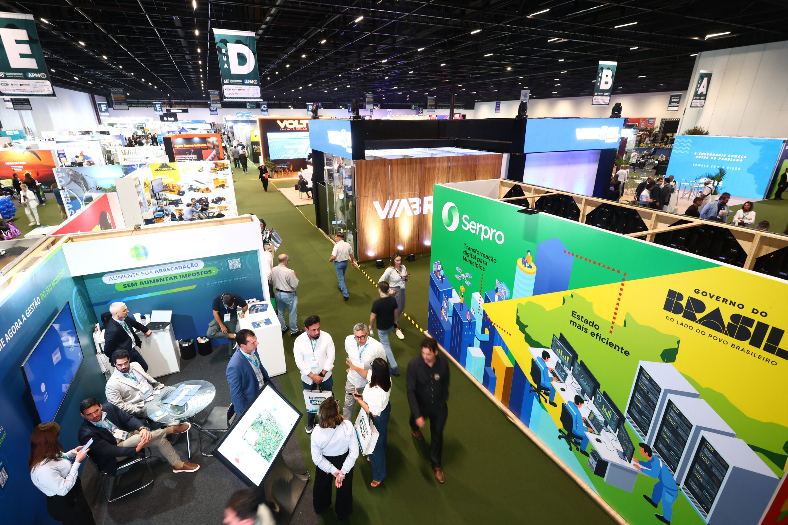 A participação do Governo Federal no 68º Congresso Estadual de Municípios se destaca pela presença de grandes estandes de instituições públicas estratégicas, como a Caixa Econômica Federal, o Banco do Brasil e o Serviço Federal de Processamento de Dados (Serpro). O evento, promovido pela Associação Paulista de Municípios (APM), acontece no Distrito Anhembi e reúne gestores públicos de diversas regiões do estado.