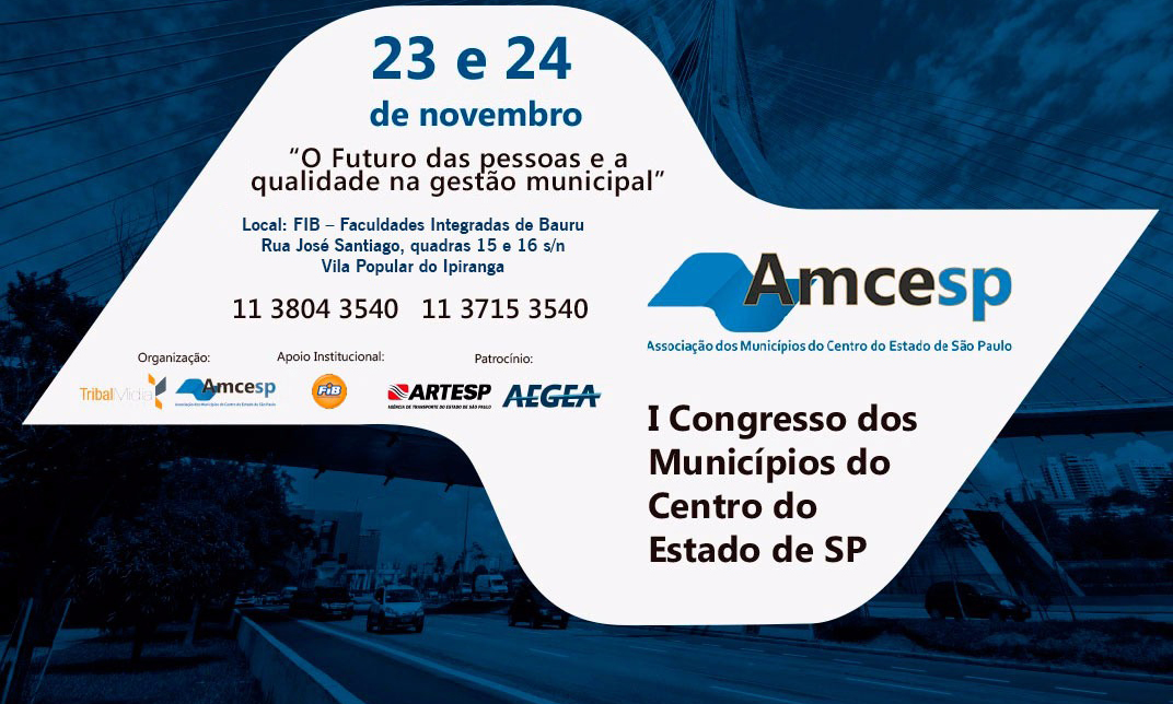 O presidente da APM, Carlos Cruz, participa nesta sexta, 24, na cidade Bauru, do I Congresso de Municípios do Centro do Estado de São Paulo. O evento acontece nas dependências da Faculdades Integradas de Bauru (FIB). Carlos Cruz vai discorrer sobre o tema “Desafios e Conquistas do Movimento Municipalista”, entre 16h20 e 17h10.