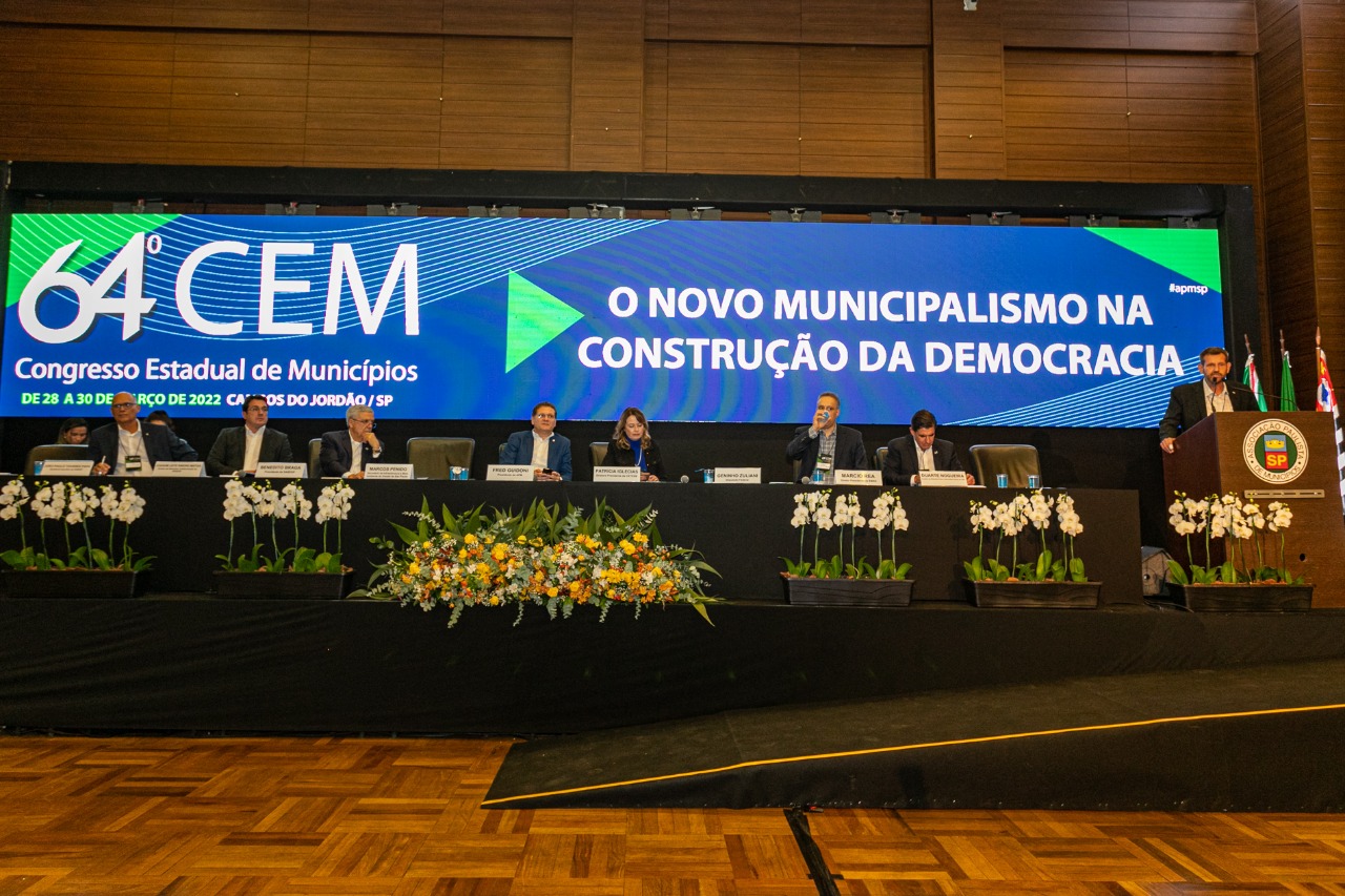 Para tratar do Novo Marco Regulatório do Saneamento e a Sustentabilidade, no 64° Congresso Estadual de Municípios, a Associação Paulista de Municípios convidou o diretor presidente da SABESP, Benedito Braga; a diretora-presidente da CETESB, Patrícia Inglecias; o diretor-presidente da Empresa Metropolitana de Águas e Energia S.A – EMAE, Márcio Rea; o deputado federal Geninho Zuliani, e relator da lei do Novo Marco Regulatório e segundo Vice-Presidente da APM; Joaquim Leite Ribeiro Matias, diretor de Relações Institucionais da Sabesp e Marcos Penido, Secretário de Infraestrutura e Meio ambiente do Estado de São Paulo.