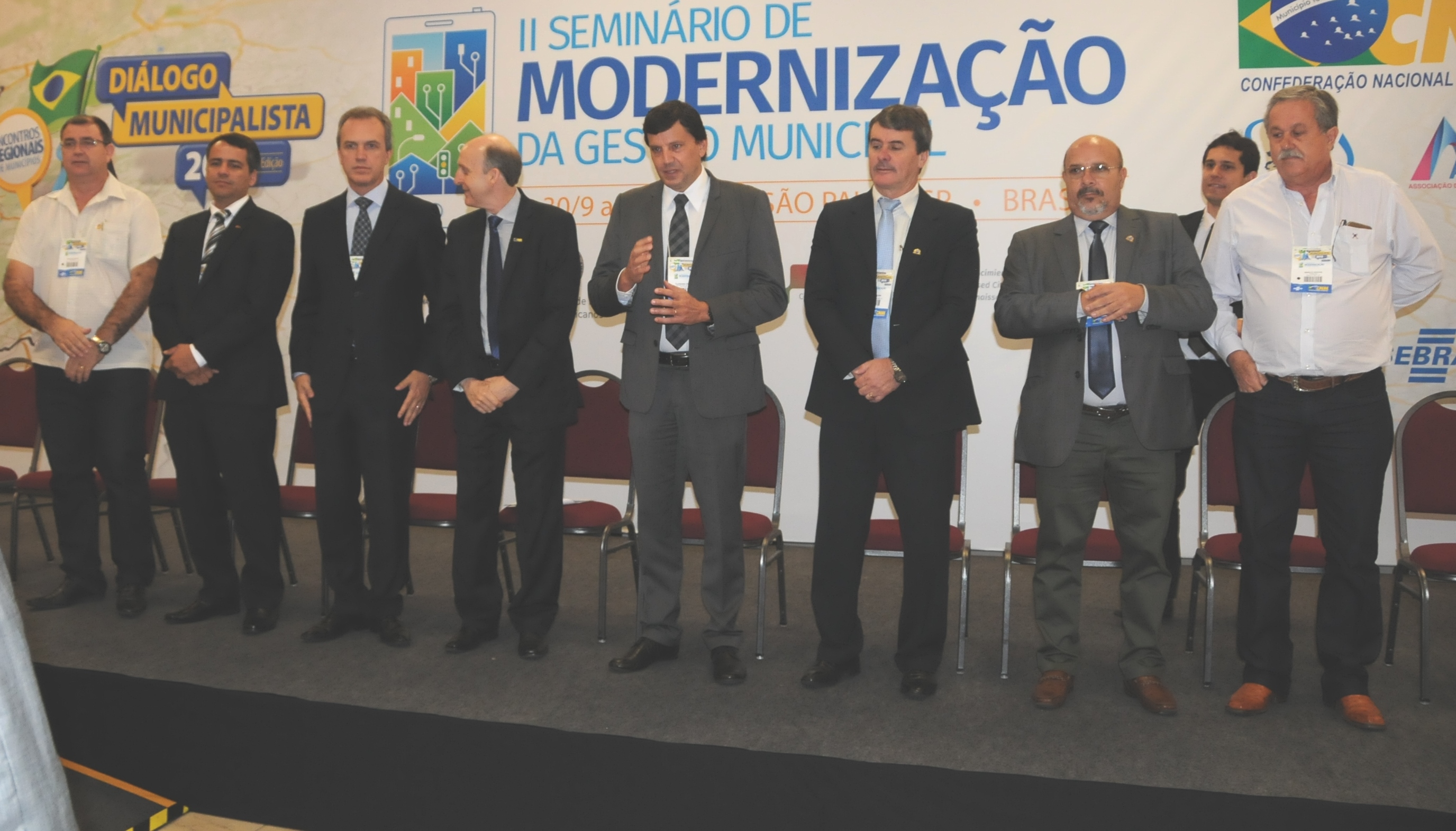 O presidente da APM e prefeito de São Manuel, Marcos Monti , participou em São Paulo, do evento Diálogo Municipalista – Encontro Regionais, cuja abertura II Seminário de Modernização da Gestão Municipal ocorreu na quarta-feira (30/9). No evento promovido pela Confederação Nacional de Municípios (CNM), autoridades discursaram sobre a importância de reposicionar o papel das cidades e quais os desafios devem ser enfrentados pelos governos locais. O evento teve como objetivo apresentar e debater as boas práticas sobre a modernização da gestão municipal; apresentar experiências inovadoras na gestão pública municipal; discutir os aspetos que conduzem a uma gestão pública inovadora e fomentar a criação de uma agenda conjunta de trabalho com associações e cidades da América Latina.
