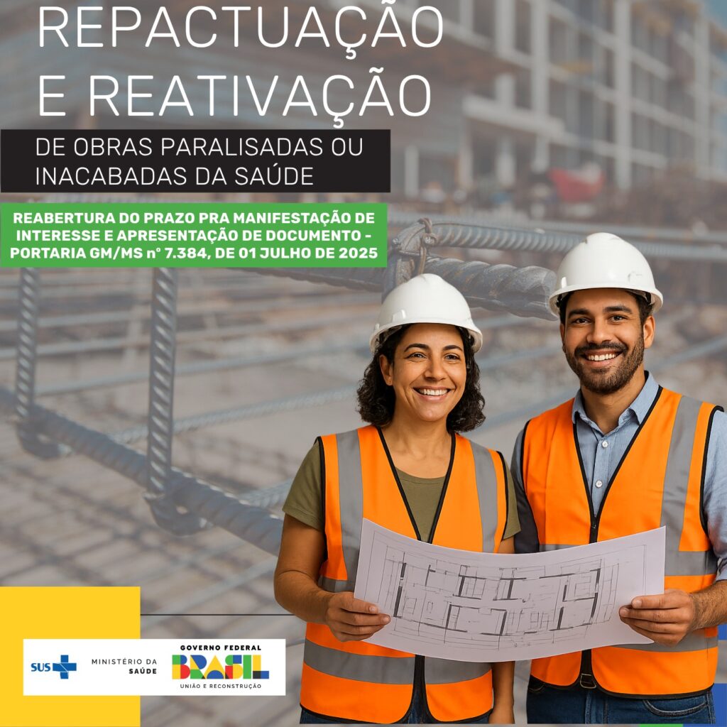 Atenção, gestores públicos: o Ministério da Saúde reabriu o prazo para adesão ao Pacto Nacional de Retomada de Obras da saúde. De acordo com a Portaria 7.384, publicada nesta terça-feira (1/7), os estados e municípios devem manifestar interesse e enviar toda a documentação necessária até o dia 1 de agosto para retomar obras paralisadas ou […]