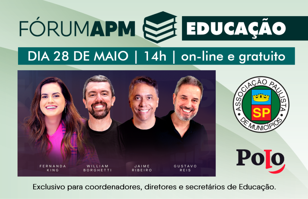 Iniciativa em parceria com a Polo Palestrantes tem inscrições gratuitas para coordenadores, diretores e secretários de educação A Associação Paulista de Municípios – APM e a Polo Palestrantes realizam no próximo dia 28, das 14h às 17h, o Fórum APM Educação, um evento online e gratuito pensado para gestores públicos da área. Em pauta, uma […]
