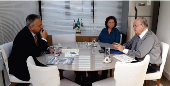 do CRECISP, José Augusto Viana Neto, conversou com o presidente da APM, Carlos Alberto Cruz Filho, e com a vice-presidente, Marilene Mariottoni, explicando as vantagens que podem obter os municípios conveniados.